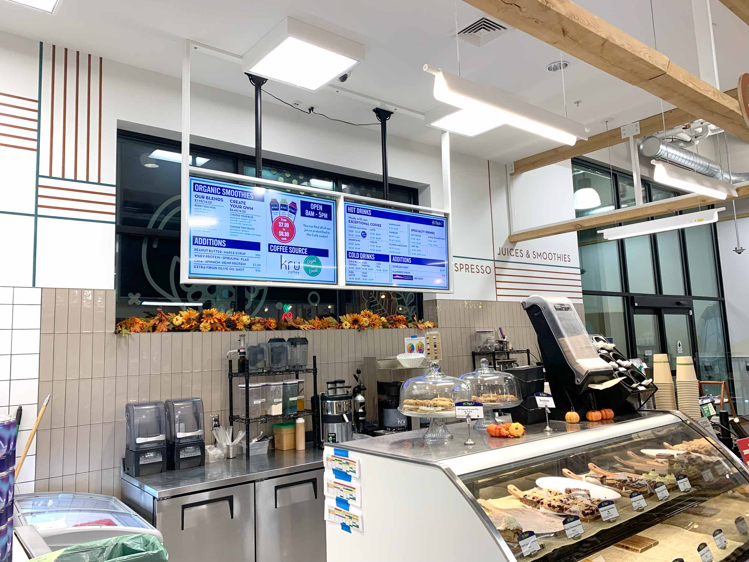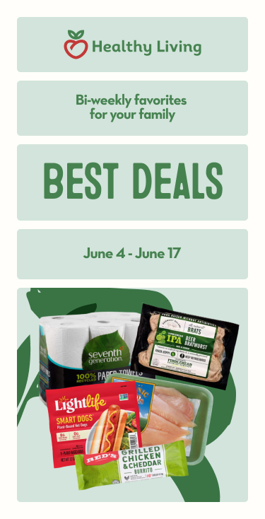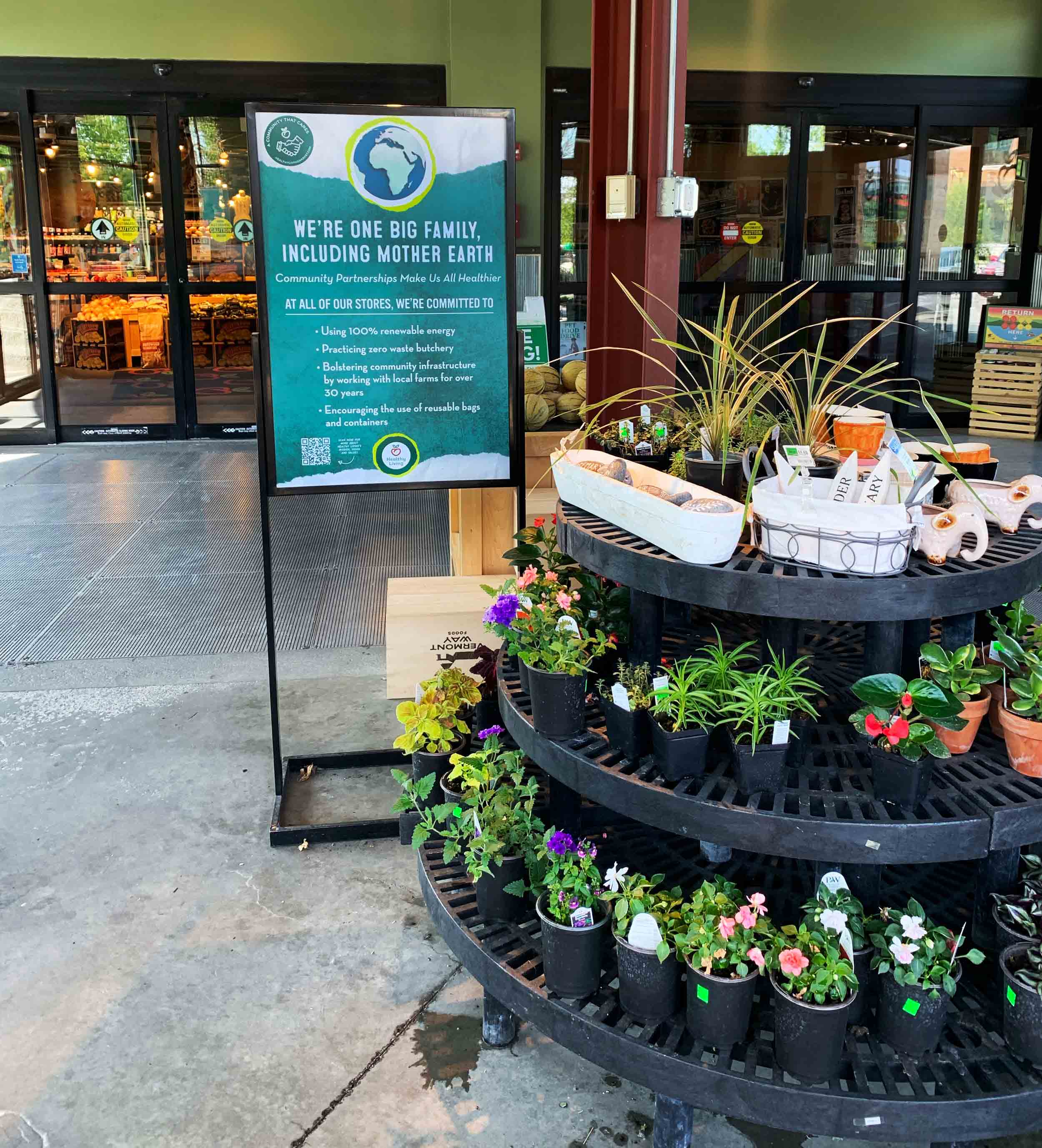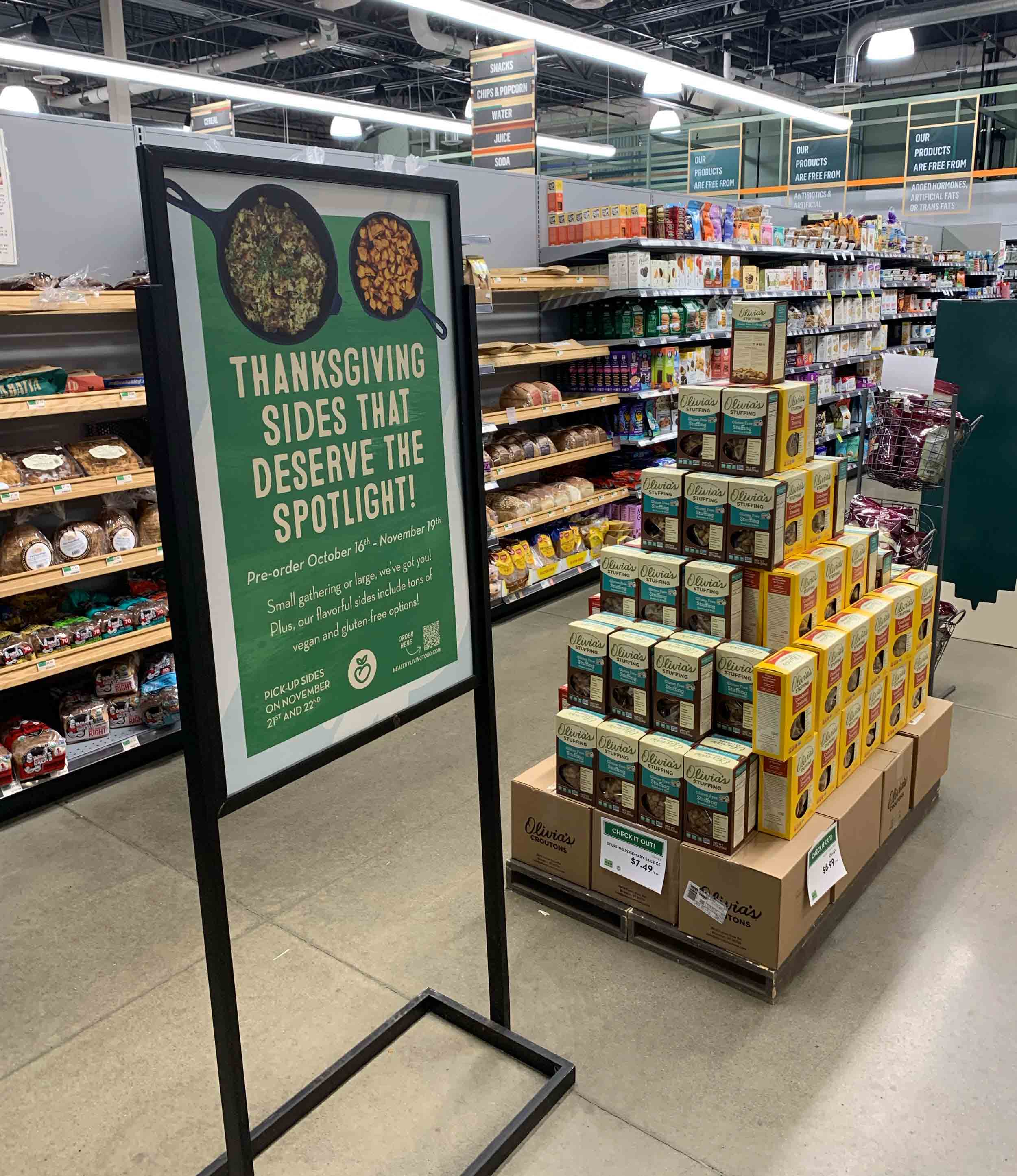 Here are environmental displays with infographic posters and specific deal and product signage at all three Healthy Living stores.